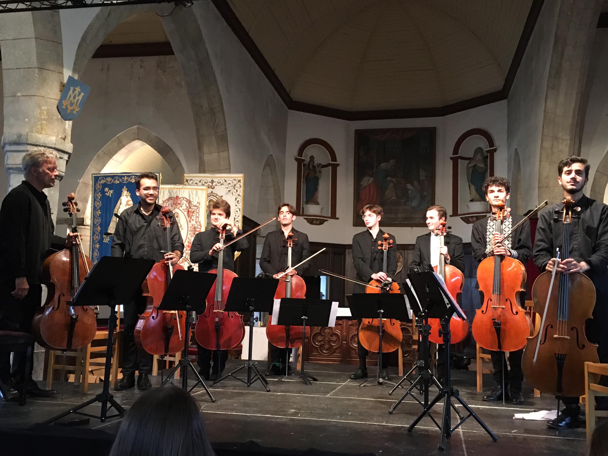 Pour la première étape aux Flâneries Musicales de Reims, le 19 juin, Raphaël Pidoux était entouré d’Emmanuel Acurero, Rafaèl Arreghini, Yanis Boudris, Noé Drdak, Léo Ispir, Eliott Léridon, Soni Siecinski. Même formation et même programme le 3 août en l’église de Pléguien (Côtes-d’Armor), dans le cadre du festival de musique de chambre Les Musicales de Blanchardeau. Tous ces jeunes violoncellistes bénéficient ou ont bénéficié d’un prêt d’instrument d’excellence proposé et géré par Talents & Violon’celles grâce à la générosité de ses mécènes institutionnels ou privés.